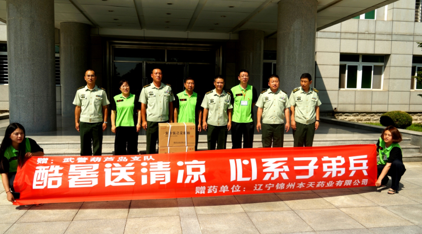31日公司黨委王書記,本天藥業(yè)質量主管裴經理與公司營銷中心人員,一起到錦州市武警總隊和葫蘆島市武警總隊進行了擁軍慰問,并向廣大官兵贈送了價值數萬元的防暑降溫藥品,受到了廣大武警官兵的熱烈歡迎。